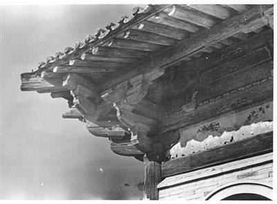 1953年,南禅寺大殿的屋檐情况。