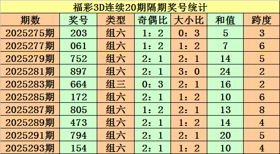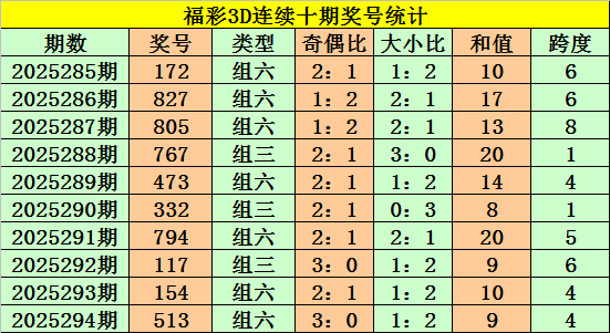 上期回顾:福彩3D第2025294期奖号:513。组六、大小小、奇奇奇。