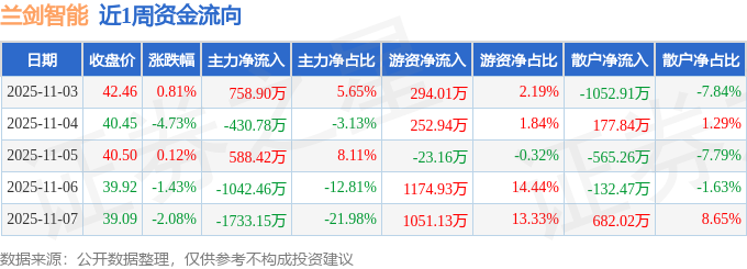 本站音信,规章2025年11月7日收盘,兰剑智能(688557)报收于39.09元,较上周的42.12元下落7.19%。本周,兰剑智能11月3日盘中最高价报42.95元。11月7日盘中最廉价报38.9元。兰剑智能面前最新总市值40.14亿元,在通用建树板块市值名次155/217,在两市A股市值名次3929/5166。