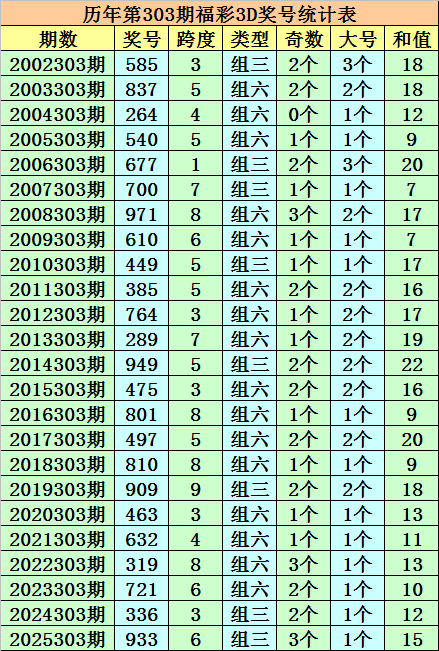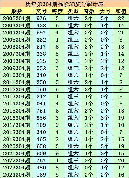 在以上奖号中奖,积年第304期福彩3D出现6次组三,出现17次组六。组六开出比例较高,本期不息温煦组六。