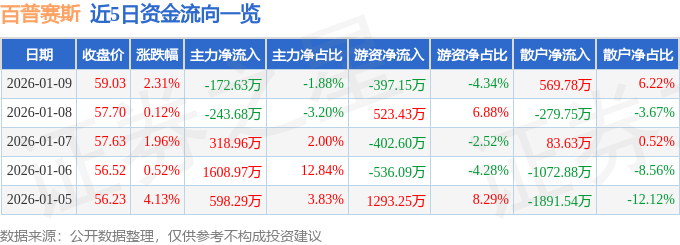 本站音书,牺牲2026年1月9日收盘,百普赛斯(301080)报收于59.03元,高潮2.31%,换手率1.25%,成交量1.57万手,成交额9160.77万元。