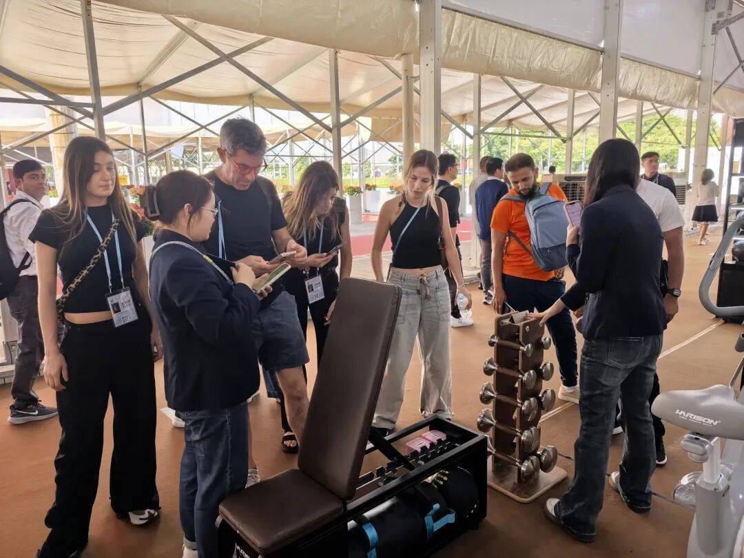 除现场的调换、接洽外,展会时间,来自德国、伊朗、埃塞俄比亚、南非等国的近10位要点客户,还专程前去沿线体育在广州开荒的线下实体体验门店进行历练。“It’s very good!”当看到该公司健身器材居品精密的拼装工艺后,一位异邦客商忍不住发出吟唱。